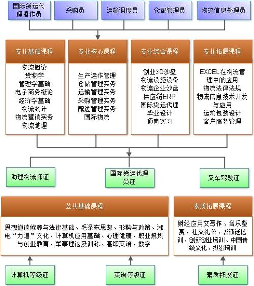 核心证书包括物流服务师(三级)、供应链管理师(三级)。拓展证书方面,学生可根据自身兴趣和发展方向选择1+X证书(物流管理、供应链运营等)、国际货运代理从业资格证、叉车驾驶证、报关水平测试证书等。其中,报关水平测试证书对于有意从事国际物流、外贸跟单的学生尤为重要。