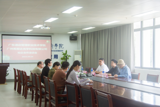 2025年9月4日上午,广东酒店管理职业技术学院迎来了一批特殊客人——广州希斯达光学科技有限公司总经理关云之率领的企业代表团。这场为期两小时的洽谈,不仅勾勒出校企合作的新蓝图,更预示着产教融合正在走向更深层次的创新实践。