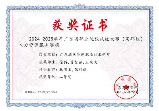 2024-2025广东省职业院校技能大赛人力资源服务赛项二等奖、