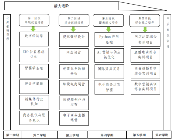 主要课程分别是:视觉营销设计、网店运营、电商业务数据分析、跨境电商运营、短视频创作与运营、电子商务直播运营等。主干课程的简介如下: