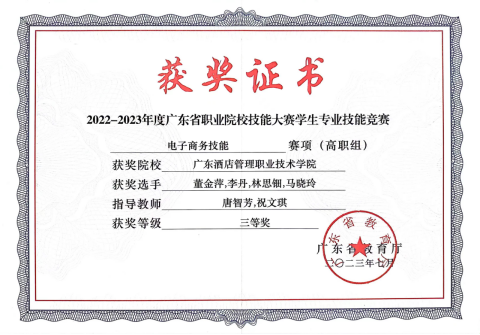 2023年4月学生参加广东省职业院校大赛-电子商务技能赛项获得三等奖