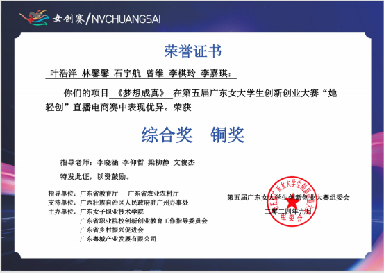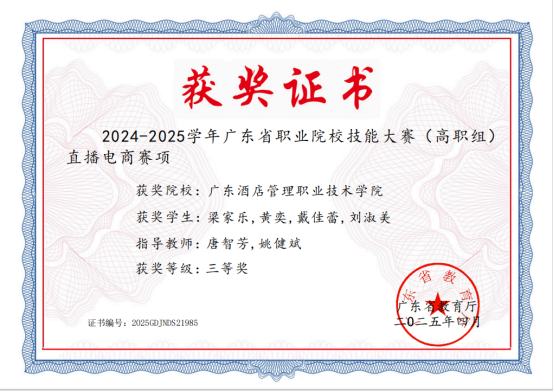 2025年3月学生参加广东省职业院校大赛-直播电商技能赛项获三等奖